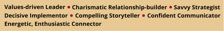 - A style that addresses challenges directly, leads with integrity and drives measurable results with urgency and focus.